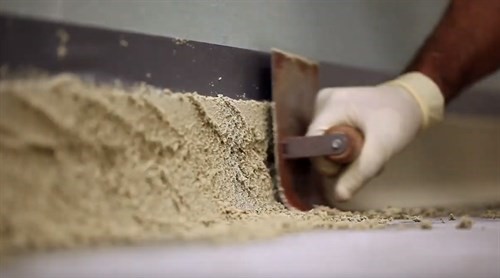 - Pomocí speciálního hladítka na fabiony vyhlazte a zhutněte materiál a vytvořte rádius.