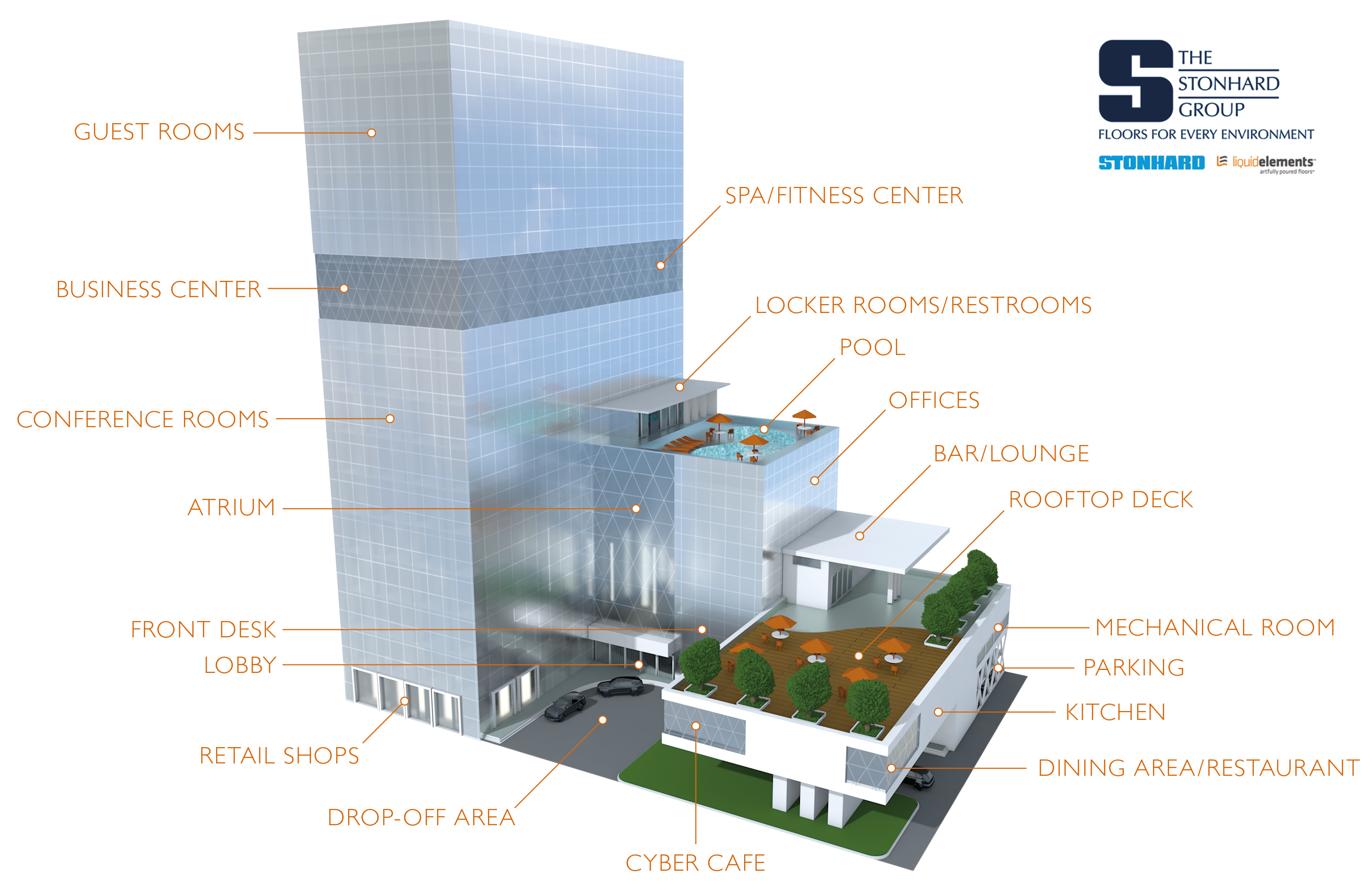 Barvy, textury a povrchové úpravy, které inspirují. Lité podlahy odolné vůči skvrnám, protiskluzové, vhodné pro lobby a restaurace, jakož i pro kuchyně a mechanické místnosti. A také venkovní aplikace! Nabízíme širokou škálu značek a barev, které jsou designově praktické a určené pro restaurace a pohostinství. Přečtěte si Bílou knihu s názvem "Warm Welcome Begins on the Floor" z The McMorrow Report pro Facility Management, kde se dozvíte o řešeních pro pohostinský průmysl prostřednictvím čtyř značek podlahové krytiny od The Stonhard Group.